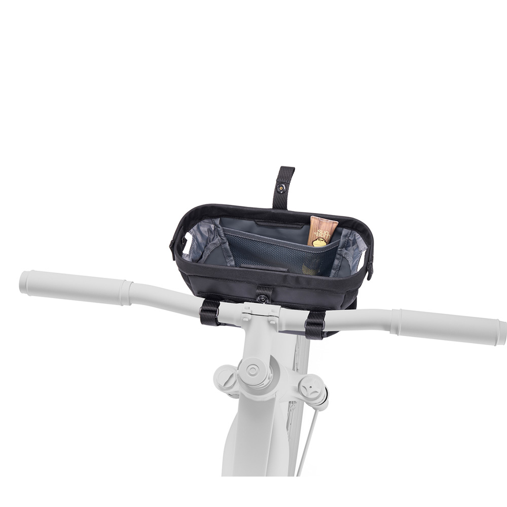 Son format léger et accessible permet de transporter téléphone, clés ou portefeuille en toute sécurité, tout en restant facilement fixée au guidon pour un accès rapide en mouvement.